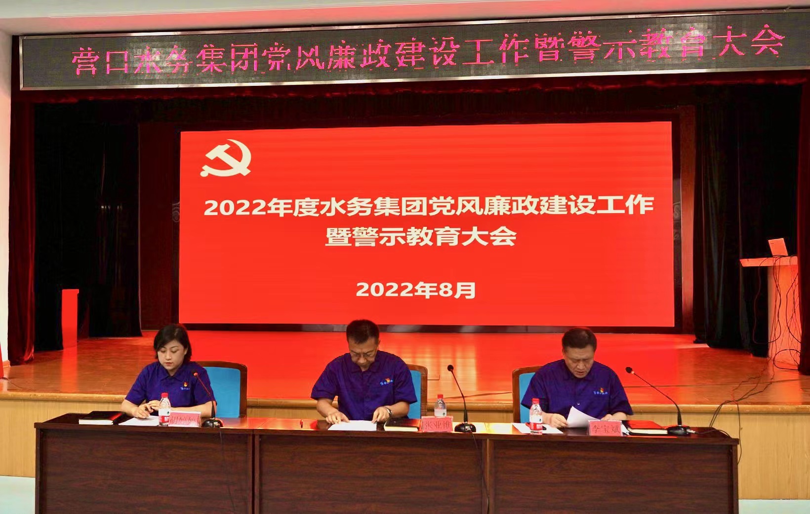 8月3日下午,水務(wù)集團(tuán)黨委召開2022年黨風(fēng)廉政建設(shè)工作暨警示教育大會。領(lǐng)導(dǎo)班子成員、各部門基層單位負(fù)責(zé)人及黨支部書記參會。會議由黨委副書記、總經(jīng)理李寶斌同志主持。