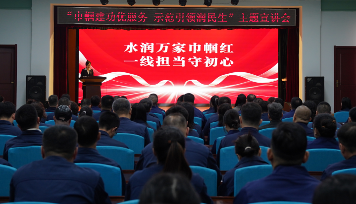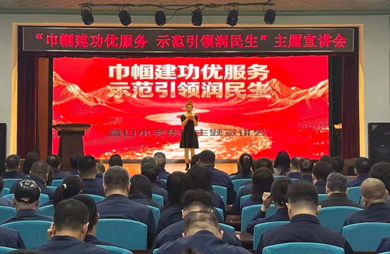 為大力弘揚(yáng)巾幗奮斗精神,充分發(fā)揮先進(jìn)典型示范引領(lǐng)作用,持續(xù)提升水務(wù)民生服務(wù)質(zhì)效,3月26日,水務(wù)集團(tuán)舉辦“巾幗建功優(yōu)服務(wù) 示范引領(lǐng)潤民生”主題宣講會。市婦聯(lián)黨組書記、主席孫艷輝應(yīng)邀出席,集團(tuán)領(lǐng)導(dǎo)班子成員、黨員群眾代表共170余人參加會議。