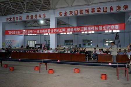 為深入推進學習型企業(yè)和員工隊伍建設,不斷激發(fā)促進職工學習專業(yè)技術、熟練崗位業(yè)務的積極性,努力提升自身技能素質(zhì)和企業(yè)服務社會、服務民生的質(zhì)量水平,8月31日,水務集團與市總工會聯(lián)合舉辦了“城市供水管道安裝工種、維修維護工種崗位技能比武競賽”。市總工會常務副主席相燾同志,以及市總工會其他相關部門的負責同志出席競賽。集團公司董事長、總經(jīng)理、黨委副書記王霄同志、黨委書記戴宏偉同志及集團公司全體領導班子和本次競賽領導小組的其他同志,以及新聞媒體朋友受邀觀摩了此次競賽。